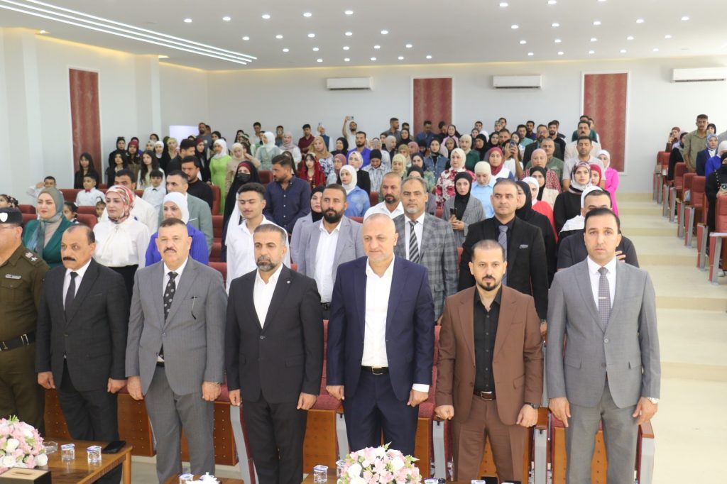 افتُتحت الاحتفالية بتلاوة عطرة من آيات الذكر الحكيم، تلاها الوقوف لقراءة سورة الفاتحة ترحماً على أرواح شهداء العراق، ثم عزف النشيد الوطني، لتبدأ الكلمات الرسمية التي كانت بمثابة مداخلات فكرية لا مجرد بروتوكولات.