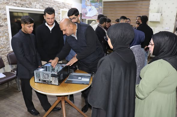 The workshop, presented by Prof. Dr. Haider Abdul-Baqi Abbas, Assistant Dean for Scientific Affairs and Graduate Studies, aimed to achieve a set of practical and applied objectives, most notably: To directly inform students about the physical parts of a computer (hardware) and how they work, to enhance their manual skills in dealing with hardware components, and to link the theoretical knowledge they have acquired in the classroom with practical reality.