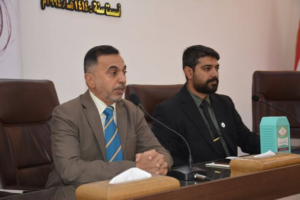 The seminar witnessed active participation from faculty members and students, and was moderated by Dr. Jasb Hassan Aboudi. Mr. Ahmed Thamer Aboud, representative of the Al-Ain Foundation’s Diyala branch, gave a presentation in which he reviewed the foundation’s journey since its inception in 2006, using figures and facts.