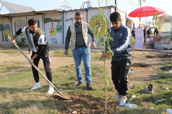In an environmental demonstration that reflects the college’s philosophy of transitioning to a green campus, the Faculty of Basic Education at the University of Diyala, in fruitful cooperation with the Department of Environmental Protection and Improvement in the Central Region, the Diyala Environment Directorate and the Baquba Municipality Directorate, organised a large-scale tree planting campaign, targeting the college’s facade and surrounding outdoor areas, to plant many permanent tree seedlings.
