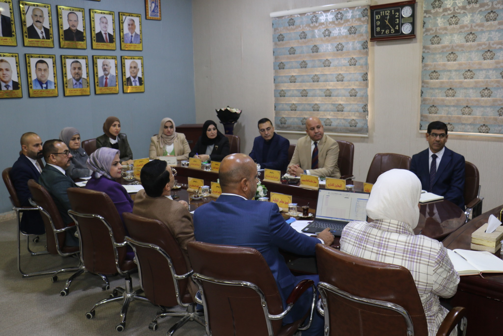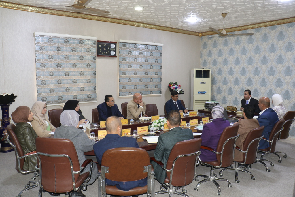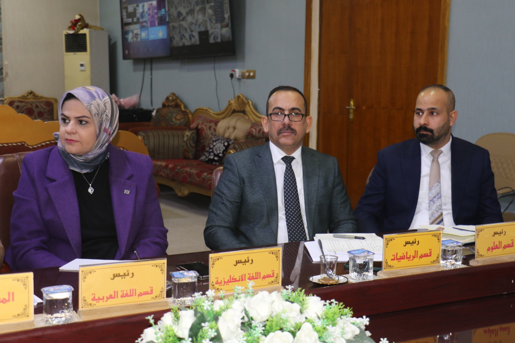 The Faculty of Basic Education at the University of Diyala held its sixth meeting for the academic year 2025–2026 on the morning of Sunday, 21 December 2025, in the faculty meeting room, chaired by Assistant Professor Dr Ayman Abdul Aoun, Dean of the Faculty, and attended by the heads of the academic departments and all members of the council, to finalise the details of education and higher education files.