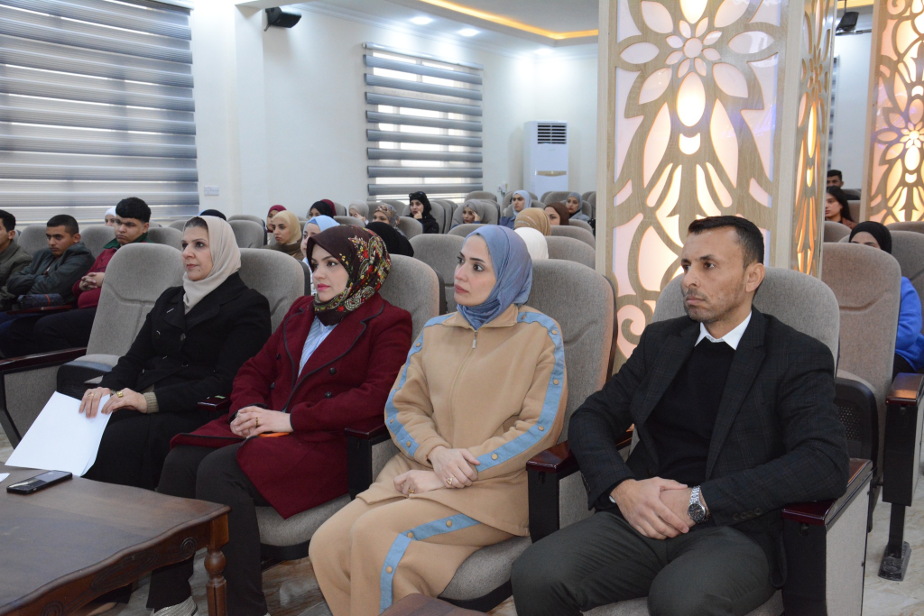 The Faculty of Basic Education at Diyala University – Guidance Unit, in cooperation with the Department of Psychological Guidance and Educational Guidance and the Continuing Education Division, and in coordination with the Media and Government Communication Division, organised an awareness seminar for first-year students entitled: ‘Guidance for first-year students in the context of their commitment to campus values’.